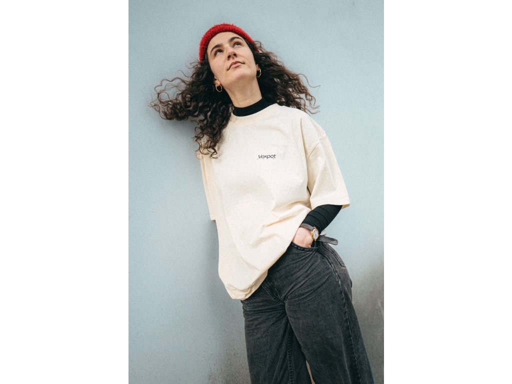 Oversized unisex tričko s barevnou kruhovou grafikou na zádech od ilustrátora Jonatana Kuny. Vepředu je černé logo Voxpotu.